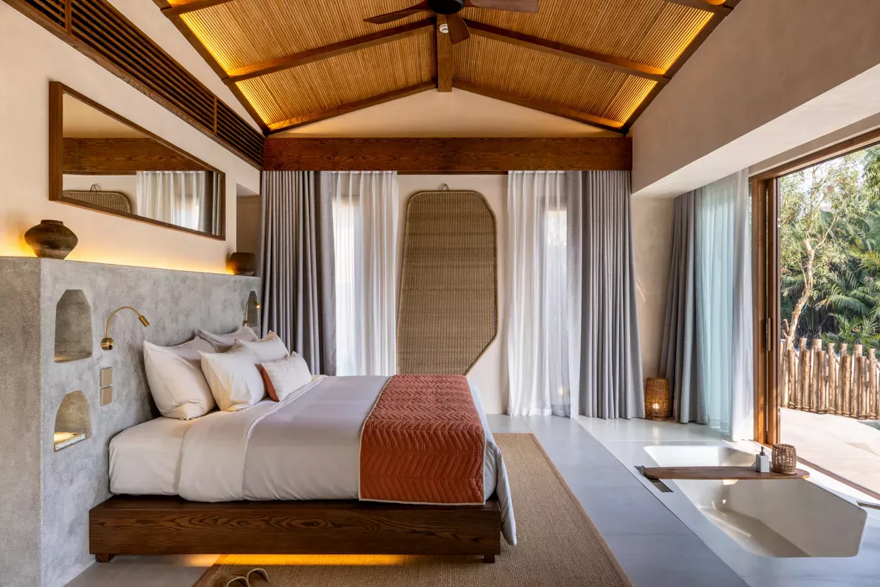 Die elegante Designästhetik der 212 Villen, Zimmer und Suiten mit großzügigen Balkonen oder Terrassen, aqua- und gelbfarbenen Farbakzenten im Kontrast zu handgefertigten Fliesen im antiken Stil, nachhaltigem einheimischem Hartholz und Originalgemälden eines renommierten vietnamesischen Künstlers vermitteln ein echtes Gefühl von Heimat und verwöhnendem Luxus.